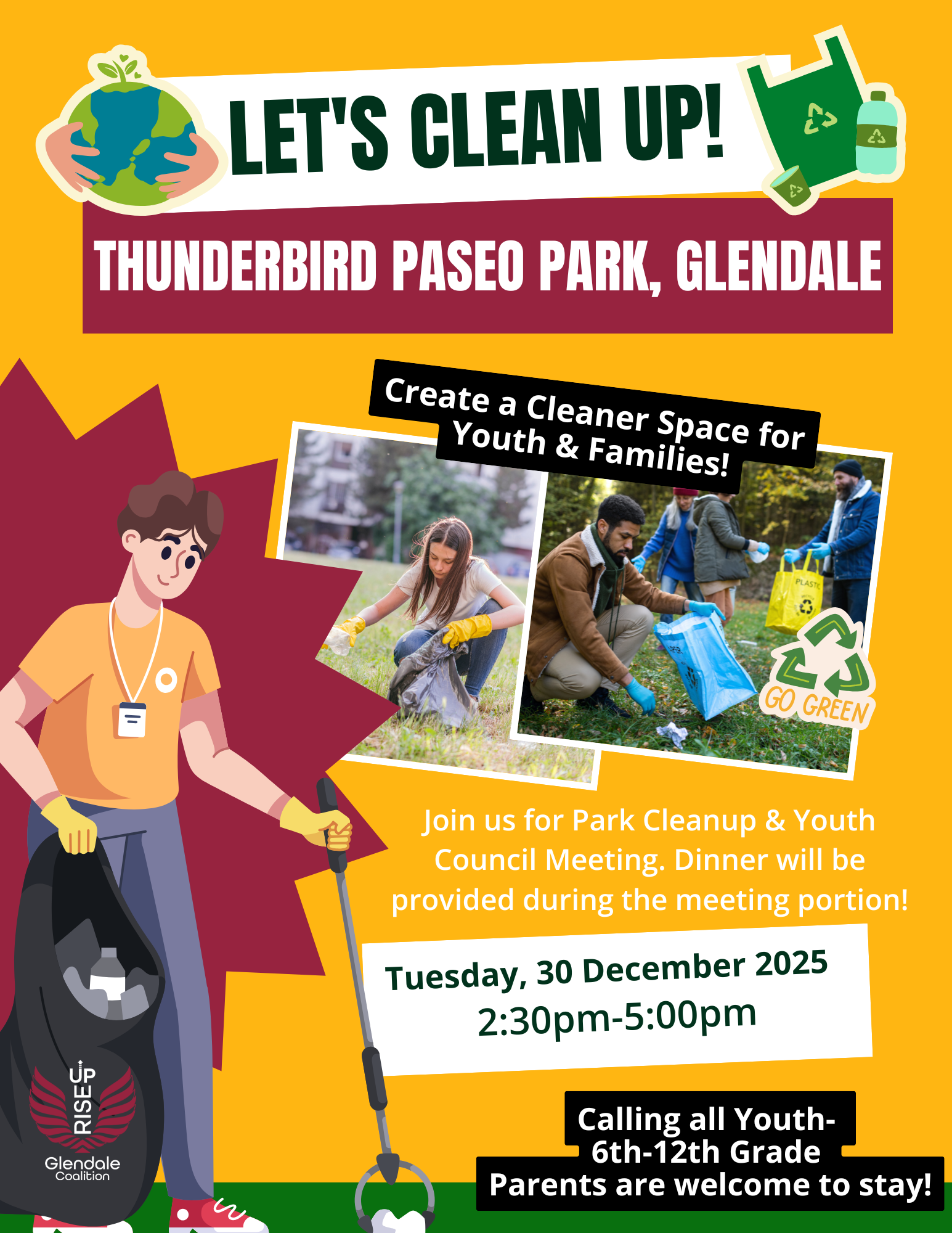 Join us for Park Cleanup at Thunderbird Paseo Park, Glendale. Youth Council Meeting!
